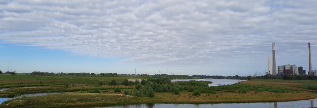 Die Emscher galt noch vor wenigen Jahrzehnten als einer der dreckigsten Flüsse Europas und war teilweise buchstäblich Kloake des Ruhrgebietes. In einem ehrgeizigen und Milliarden Euro teuren, langfristig angelegten Plan wird die Emscher nun wieder in ein lebendiges Fließgewässer verwandelt. Eines der wichtigsten Teilgebiete der Emscherrenaturierung ist das Mündungsgebiet der Emscher, das heute nördlich der bisherigen Mündung verläuft. Die alte Mündung ist nur noch als Totarm vorhanden, der allerdings ebenfalls Lebensraum bietet – unter einer denkmalgeschützten Brücke dort leben beispielsweise Fledermäuse. Die Renaturierung der Emschermündung war weitaus schwieriger, als sich viele von uns das womöglich vorgestellt haben. Das Gebiet ist Bergsenkungsgebiet und wir befinden uns in einem der am dichtesten besiedelten Regionen Europas. Es konnte daher leider nicht darum gehen, dem Fluss seine vollkommen eigene Dynamik wiederzugeben, wie das bei anderen Renaturierungsprojekten der Fall ist. Allein 400 km unterirdische Kanäle mussten gebaut werden. Feste Wege für die Wanderung der Fische mussten geplant werden und Hochwasserbecken geschaffen werden, die allerdings eine hohe ökologische Bedeutung für Wasservögel aufweisen. Die Emschermündung ist ein wichtiges Rastgebiet für Krickenten, mehr als 500 Pfeifenten wurden hier gezählt und die Zahl der Schnatterenten hat stark zugenommen, so dass die Stockente nur noch die vierthäufigste Entenart ist. Aktuell brüten auch Wasserralle, Kiebitz und Flussregenpfeifer, Feldlerche und Wiesenpieper kamen als neue Brutvögel hinzu. Insgesamt leben hier rund 100 Vogelarten. Eher unerwartete Probleme bereiteten bei der Renaturierung invasive Nutrias bzw. heimische Biber, die lange Zeit in unseren Regionen verschwunden waren. Das Gebiet ist umzäunt, aber menschliche Störungen nehmen nach der Freigabe der Wege leider zu, da sich nicht alle Menschen an die Umzäunung halten. Die Artenvielfalt ist in einem Flussmündungsgebiet in Bereichen früher Sukzessionsstadien meist höher. Inseln und Halbinseln lassen sich jedoch nicht beweiden, hier wird zukünftig Auwald entstehen und sich die Artenzusammensetzung ändern. Uferbereiche und Deiche werden jedoch mit Schafen beweidet und können vor allem Pflanzen und Insekten des Offenlandes Lebensraum bieten. Das Gebiet hat bisher keinen Schutzstatus.