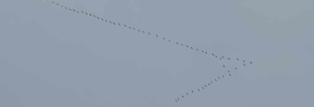 Wespenbussarde gehören zu den Langstreckenziehern unter den heimischen Greifvögeln. Die heimliche Waldart brütet u.a. in Nord- und Mitteleuropa, wo die Vögel erst im Mai ankommen und sich nach vollendeter Brut Ende August bis September wieder auf die lange Reise in die Winterquartiere im tropischen Afrika machen. Als hochspezialisierte Art, die sich gerne von Hymenopteren bzw. ihrer Brut ernährt, würde sie im Winter bei uns nicht ausreichend Nahrung finden. Als Thermiksegler erfolgt die Überquerung von Barrieren oft an speziellen Landmarken – das Mittelmeer wird an seinen engen Stellen überquert, z.B. an der Meerenge von Gibraltar; auch im Gebirge wie in den Alpen werden die Vögel gehäuft an bestimmten Pässen beobachtet. Hier bei uns in NRW scheint der Zug aber überwiegend als Breitfrontenzug stattzufinden. Dennoch lassen sich Greifvögel im Herbst natürlich besonders gut von Kuppen und erhöhten Punkten, die freie Sicht nach Nord bzw. Nordost erlauben, beobachten. Ende August/Anfang September ist die perfekte Zeit, um nach den ersten ziehenden Greifvögeln Ausschau zu halten. Neben Wespenbussarden ziehen nun auch Weihen wie etwa Rohrweihen und mit etwas Glück können auch Fischadler und andere Weihenarten wie z.B. Wiesenweihen beobachtet werden. Mit ganz viel Glück ist auch mal eine echte Seltenheit dabei (hier z.B. eine Schlangenadlerbeobachtung aus dem Jahr 2023, aber auch 2025 gab es Meldungen aus NRW). Wie schon erwähnt, müssen Wespenbussarde warme Aufwinde nutzen, um Höhe zu gewinnen, sie werden also meist erst im Laufe des Vormittages durchziehen. Auch später am Tag können sie natürlich beobachtet werden – in großer Höhe sind sie aber oft nur mit Mühe auszumachen. Gerade bei wolkenlosem Himmel ist das nicht einfach (kleiner Tipp: eine Sonnenbrille schont die Augen und kann die Entdeckungswahrscheinlichkeit erhöhen). Wespenbussarde ziehen übrigens regelmäßig in Trupps. Meist sind es bei uns zwar Einzelvögel oder kleine Trupps, aber auch Dutzende oder in seltenen Fällen Hunderte Individuen können gemeinsam ziehen oder in einer Schraube an Höhe gewinnen.